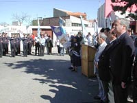 Pese a la hora, numerosos fueron los asistentes a este acto que año a año organiza la tradicional entidad de Trelew. El intendente encabezó el acto junto al presidente de la Sociedad Española, Matías Martín y se hicieron presentes, además, el presidente del Concejo Deliberante, Alejandro Archenti; el secretario de Gobierno, Tomás Maza; el jefe de la Base Aeronaval Almirante Zar, capitán Guiaquinta y la Banda de Música de la Policía de la Provincia, que tuvo a su cargo la ejecución de los Himnos Nacionales de España y Argentina. Una de las instancias más significativas fue la colocación de una ofrenda floral al pie del busto del General San Martín, a cargo del intendente Gatica; de Martín y del capitán Giaquinta.