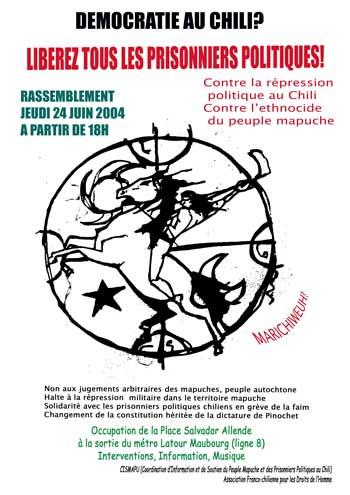 Célèbrer la rénovation des forces de la nature et la vitalité de la lutte du peuple Mapuche, en vous invitant à visiter son site internet et en vous conviant aux activités organisées par différents collectifs de soutien ces prochains jours : - le 23 juin - Concert de Soutien aux communautés Mapuche au Cabaret Sauvage organisé par la FIDH, Kolektivox, Sin Fronteras et Sauvage production. - le 24 juin - Grand rassemblement devant l'ambassade du Chili à Paris contre la répression politique au Chili et pour la libération de tous les prisonniers politiques. Organisé par le CISMAPU et l'Association Franco-Chilienne pour les Droits de l'Homme