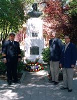 Gómez, al pie del monumento que recuerda el 12 de octubre de 1492,