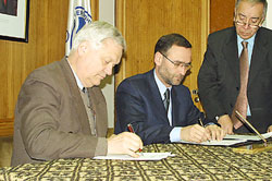 En una sencilla ceremonia, que tuvo lugar en la Sala de Consejo de Rectoría, el rector de la Ufro, Heinrich Von Baer y el alcalde de Temuco, René Saffirio suscribieron el acuerdo que en términos generales implica la mutua colaboración entre ambas instituciones para fortalecer las dos líneas temáticas antes mencionadas.