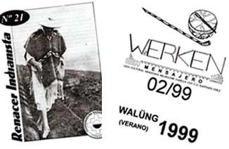 El azaroso mundo de las revistas indígenas por Soledad Ortega Contrariamente a lo que se podría creer, son muy pocos los medios escritos que difunden la temática indigenista en Chile. En Santiago, los boletines Werkén y Renacer Indianista son los únicos espacios que han logrado sobrevivir durante un período de tiempo prolongado. Poco a poco, sin embargo, comienzan a proliferar los sitios indígenas on line. Dicha revista nació