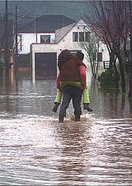 habitantes de las poblaciones inundadas, Bomberos y el alcalde de Hualqui, Renato Galán, piensan inundaciones como las de ahora se producen cada vez que Endesa abre las compuertas en Pangue.  El edil afirmó que no le cabe ni una sola duda de que crecidas de esta naturaleza se deben a la apertura de las compuertas.  Diario El Sur, 26 de agosto de 2002